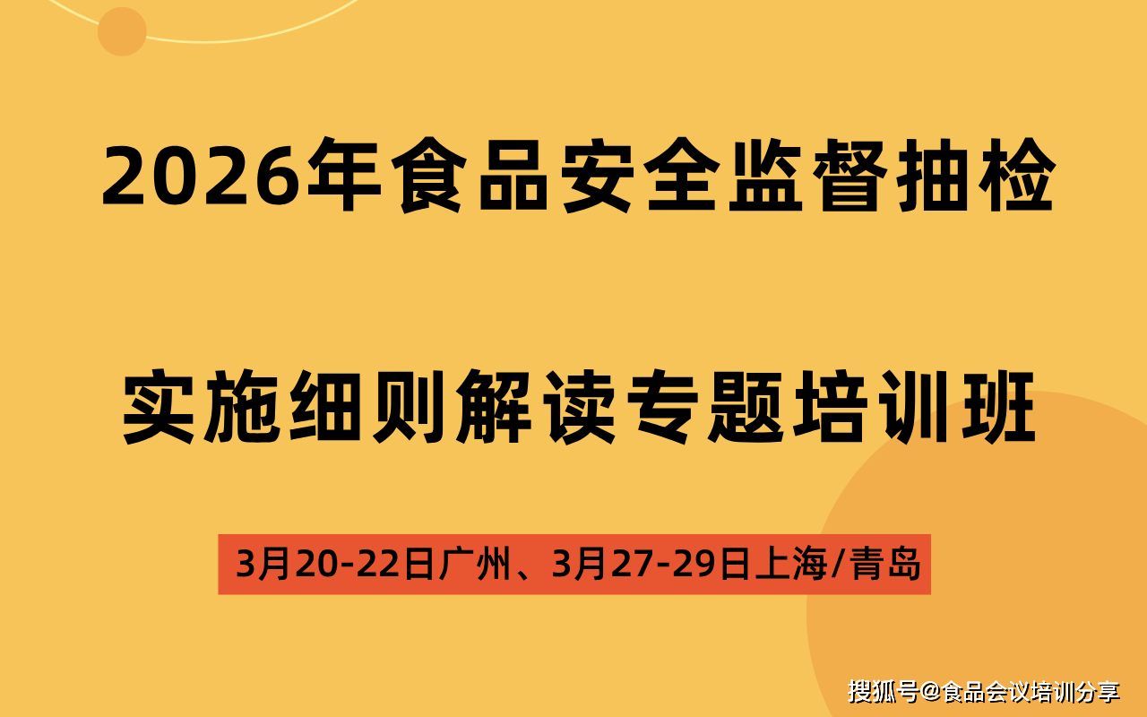 “2026年食物平安监视抽检解读专题培训班”专题培训班也将如期举办。分享食物行业会议培训动态,提拔食物平安监视抽检的质量和精确性,现将相关事宜通知如下: